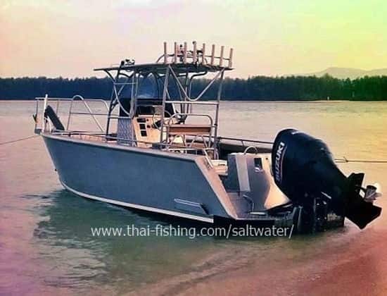 Båden er en specialbygget aluminium speedbåd af PWS – Phuket, fra Oktober 2017, båden har en 250 hk 4 takt Suzuki påhængsmotor. Hvilket betyder, at båden er hurtig og har en bimini over center control. Båden kan tage maksimum 2 lystfiskere på båden samt kaptajn og deckhands. Så alle har nok plads på båden til at nyde deres dag.